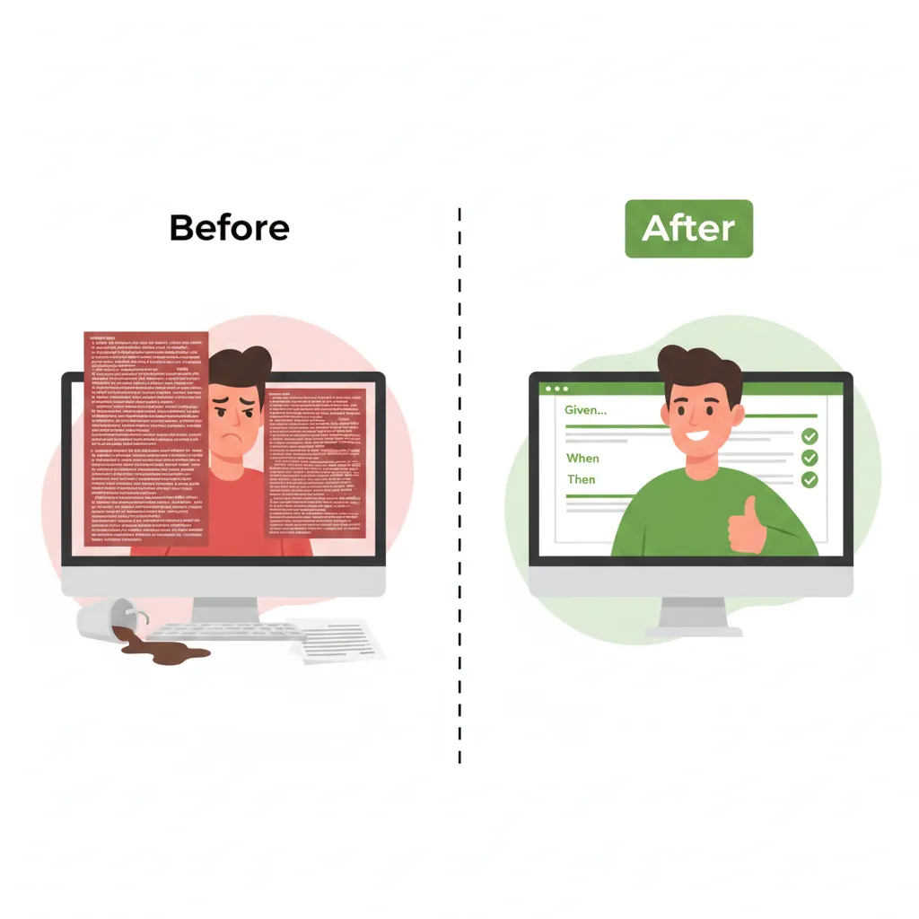✓ User can complete a purchase ✓ GIVEN: The user has items in their cart 📊 Cart Contents: [Laptop Pro x1, $1200] ✓ WHEN: User proceeds to checkout ✓ WHEN: User fills payment details 📊 Payment Data: [Card: **** 4242, Amount: $1200] ✓ THEN: Order is confirmed 📊 Order Summary: [ID: #12345, Status: confirmed]When a test fails: