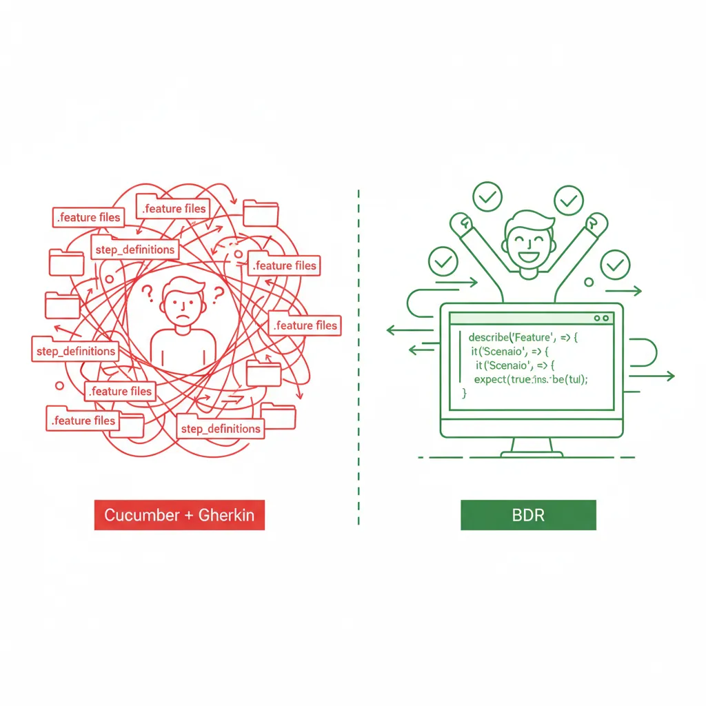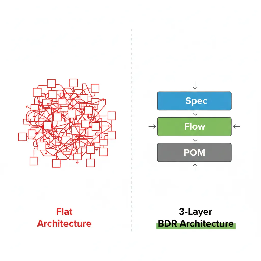 Section titled “Why flat test architectures fail: Moving beyond POM to a 3-layer BDR approach ”This is a technical deep dive into BDR’s layered architecture. For an introduction to why BDR exists and how the